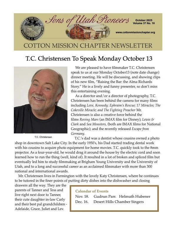 You can also follow our Facebook page at Cotton Mission Chapter of Sons of Utah Pioneers. We would love to have you join us!